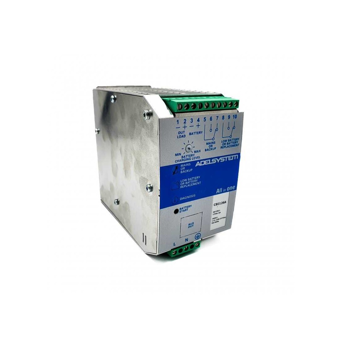 Alimentatore caricabatterie AdelSystem 12VDC 3Ah con test periodico batteria bassa Input: Single-phase 115 û 277 Vac Output Load: power supply 12 Vdc, 6 A Output Battery: charging 12 Vdc, 6 A Suited for the following battery types: Open Lead Acid, Sealed Lead Acid, lead Gel and Ni-Cd Diagnostic of battery status: charging curve IUoUO, constant voltage and constant current, Battery Life Test function (Battery Care) Switching technology Output voltage 10-14.4 (17Vdc for Ni-Cd) Three charging level