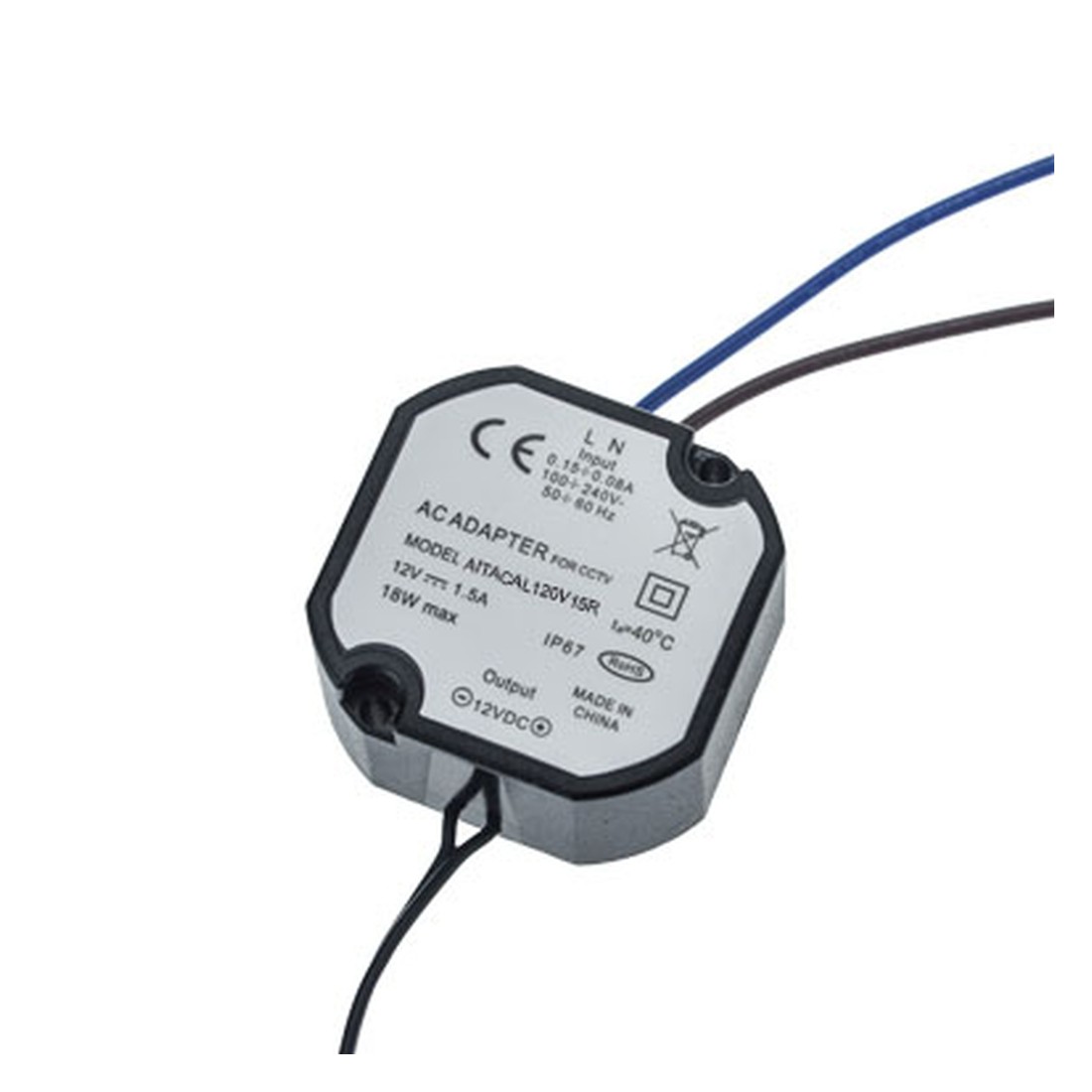 Alimentatore compatto 12Vcc 1,5A OUT in resina elevato grado di protezione