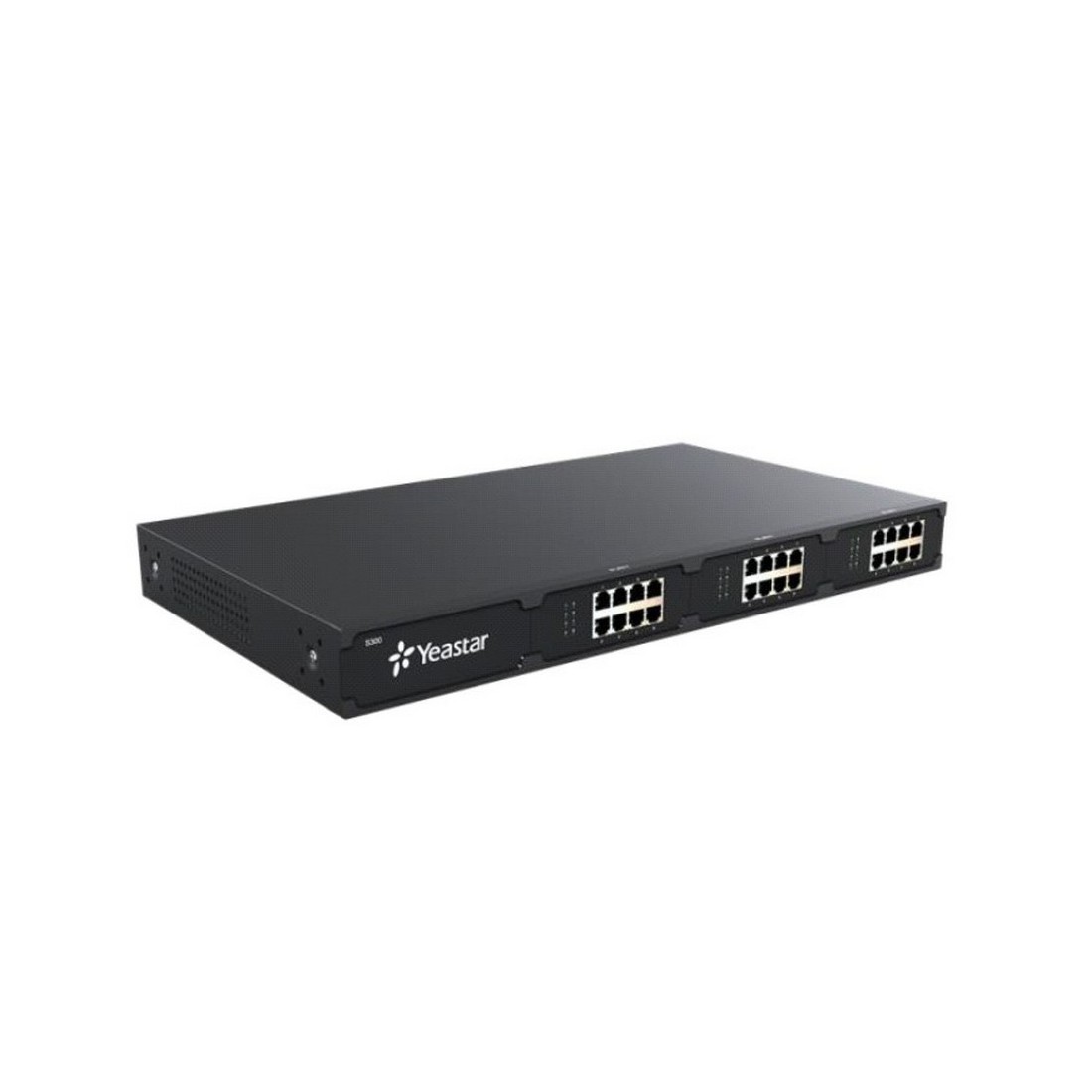 Centralino ibrido Yeastar S300, Protocollo VoIP SIP, 300 utenti (fino a 500), 60 chiamate simultanee (fino a 120), max 24 porte FXS/FXO/BRI/GSM. Fino a 3 schede PRI (in assenza di altre schede/moduli).