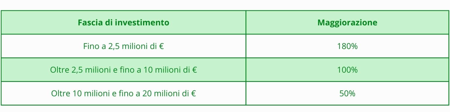 Per quanto riguarda la maggiorazione, varia in base a tre diverse fasce di investimenti: