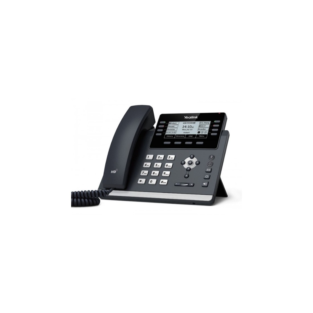 Yealink SIP-T43U: 12 account SIP, Bluetooth via dongle, Wifi via dongle, fino a 21 tasti BLF. Il telefono Yealink T43Uè il nuovo telefono IP serie T4 dedicato agli utenti che necessitano di un telefono professionale, semplice da utilizzare e dotato di tutte le funzionalità. E un prodotto dal design raffinato e dotato di un display grafico LCD retroilluminato da 3.7" e due porte di rete Gigabit. Il T43U può supportare fino a 12 account SIP ed è possibile programmare fino a 3 pagine da 8 tasti funzioni flessibili ognuna: i tasti funzione possono essere configurati con numerose funzionalità, tra cui BLF e Speed Dial.