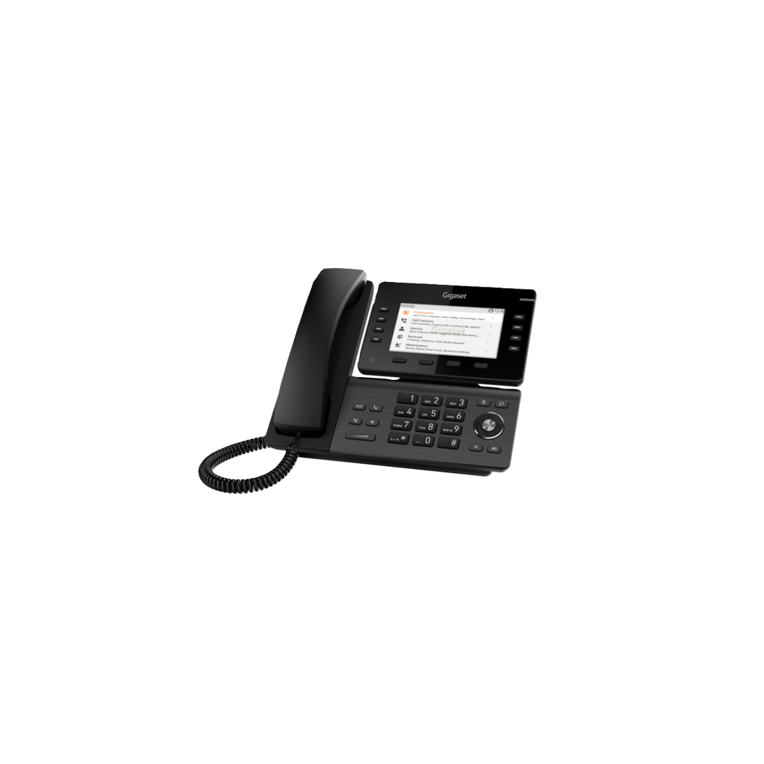 S30853-H4103-R101 Telefono IP Gigabit PoE, 12 Account SIP, Display a colori da 5" - Alimentatore non incluso Display TFT a colori da 5" (480x272) 8 (28) tasti funzione configurabili con LED multicolore e Smart Label Funzionamento vivavoce con audio HD Connessione per cuffie 4P4C Switch Ethernet Gigabit a 2 porte (RJ45) con funzionalità Power over Ethernet (PoE) Alimentazione PoE o alimentatore da 5V DC (opzionale) Supporta fino a 3x moduli di estensione Gigaset P800 Key Pro
